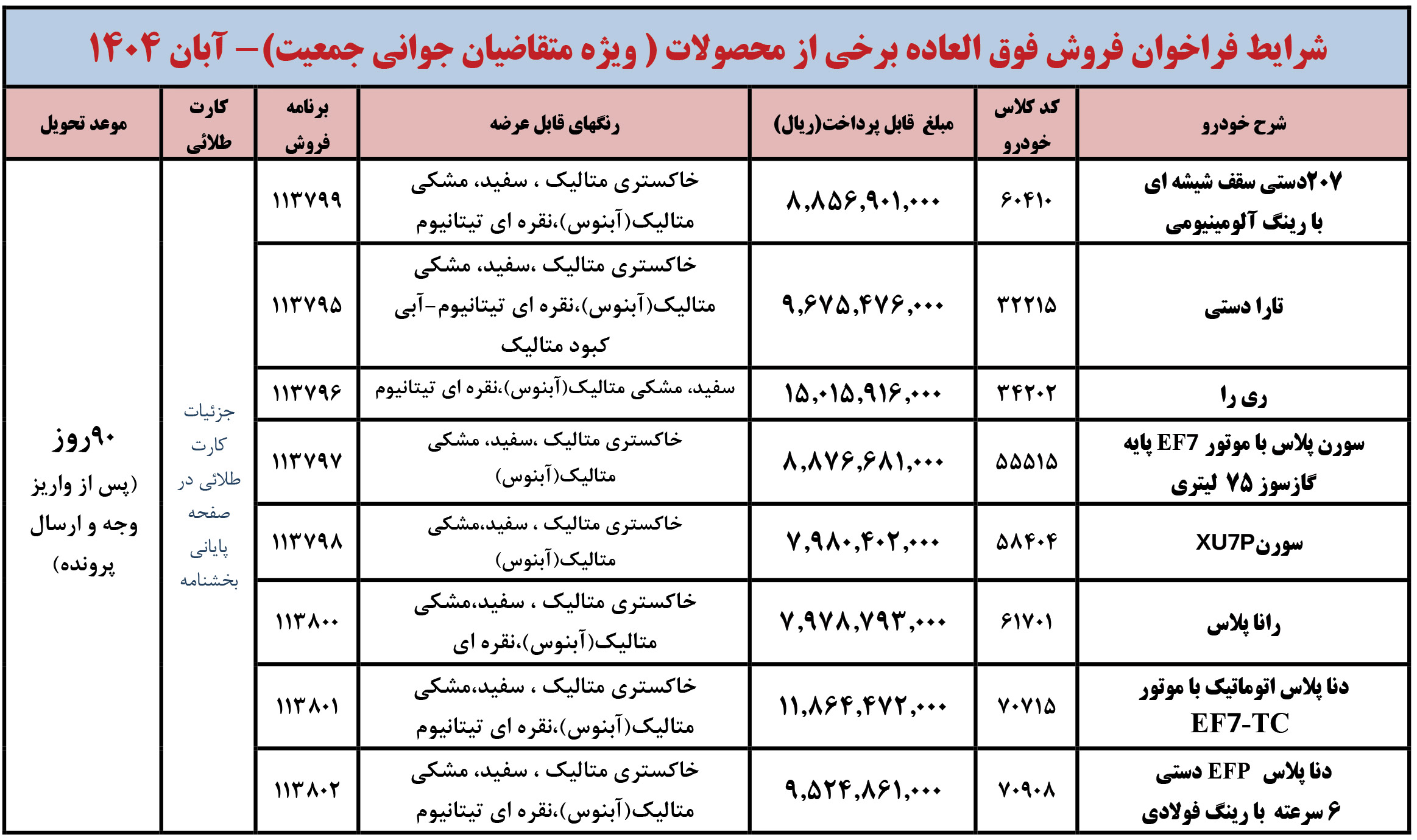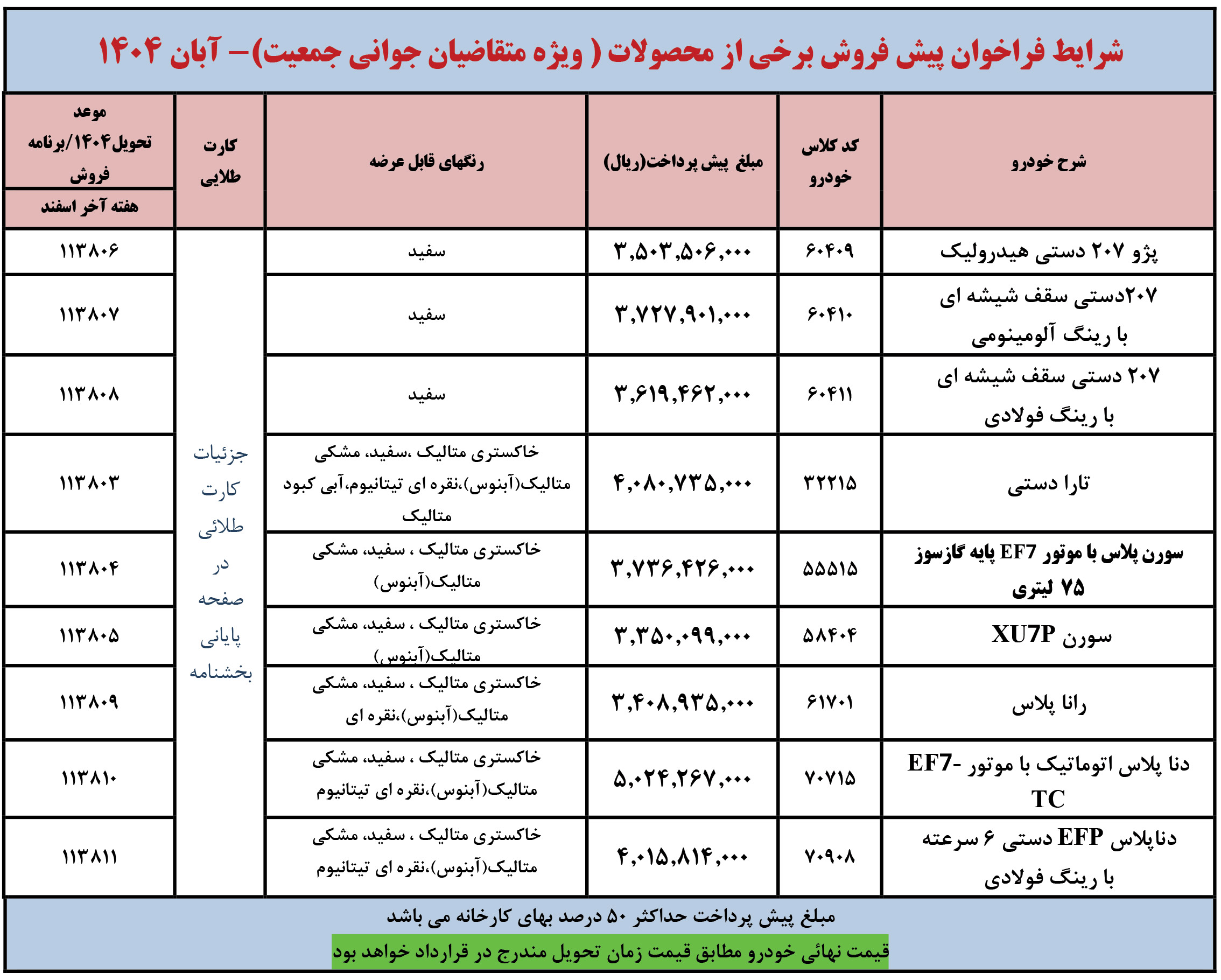 همزمان با اعلام نتایج نهایی برندگان نهمین مرحله فروش ایران خودرو که در آبانماه 1404 نامنویسی کردهاند، این شرکت فراخوان ثبت نام از منتخبین طرح جوانی جمعیت ایران خودرو را اعلام کرده است: