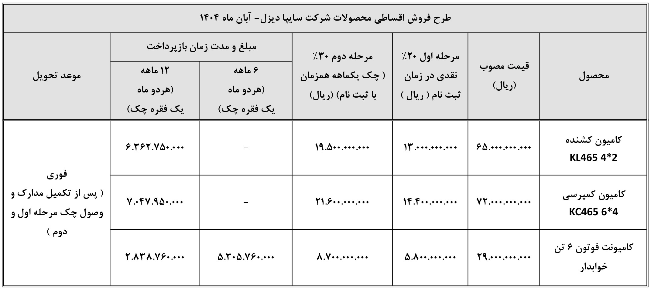 فروش اقساطی کامیون سایپا دیزل: آبان 1404